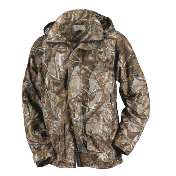 Geacă confortabilă, camuflată pentru sezonul de vânătoare de vară. Cu guler înalt, glugă detașabilă, două buzunare laterale cu fermoare, două buzunare frontale cu elemente de fixare și un buzunar interior. Căptușeala din plasă asigură o aerisire bună, fermoarul frontal bidirecțional este protejat de o clapă de furtună. Talia, tivul și mansetele sunt reglabile.